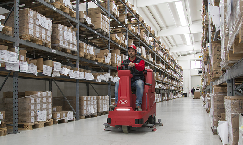 GIGA es la línea de fregadoras de hombre a bordo para la limpieza profesional de áreas grandes. Creada para trabajar incluso con presencia de público, gracias a la perfecta recogida de agua en curva, a la silenciosidad (61 dB) y a la luz de ledes de indicación delantera. Con sus dos programas de limpieza GIGA tiene una gran autonomía de las baterías (hasta 6 horas), reduce los consumos de agua y detergente. El control de los parámetros de trabajo garantiza una calidad constante de limpieza. Está disponible en tres versiones: con pista de lavado de 700, 800 y 900 mm con dos cepillos de rodillo o de disco.