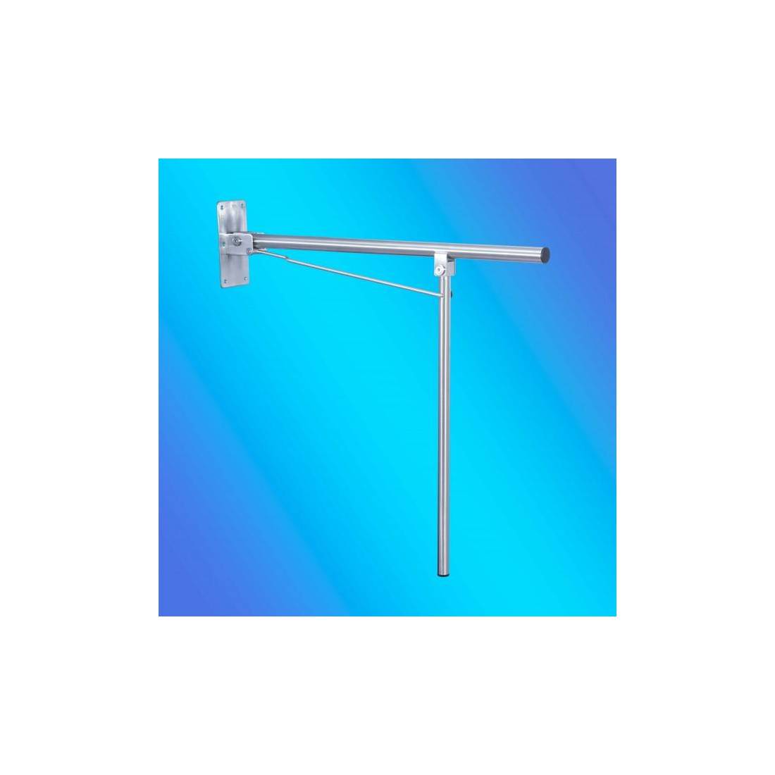 JofelBarra abatible fijada a pared con pie de apoyo formando 'T'.\nFabricado en acero inox. satinado de alta calidad y resistencia.\nPor su especial diseño se abate totalmente sobre la pared de fijación