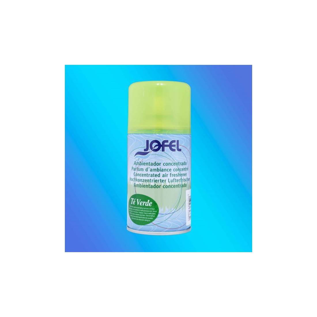 JofelAmbientador aerosol concentrado, perfume TÉ VERDE.\nAmbientador con alta concetración de perfume: 6%.\nEnvase metálico con válvula de seguridad que impide dispensación larga y continuada.\nPara di