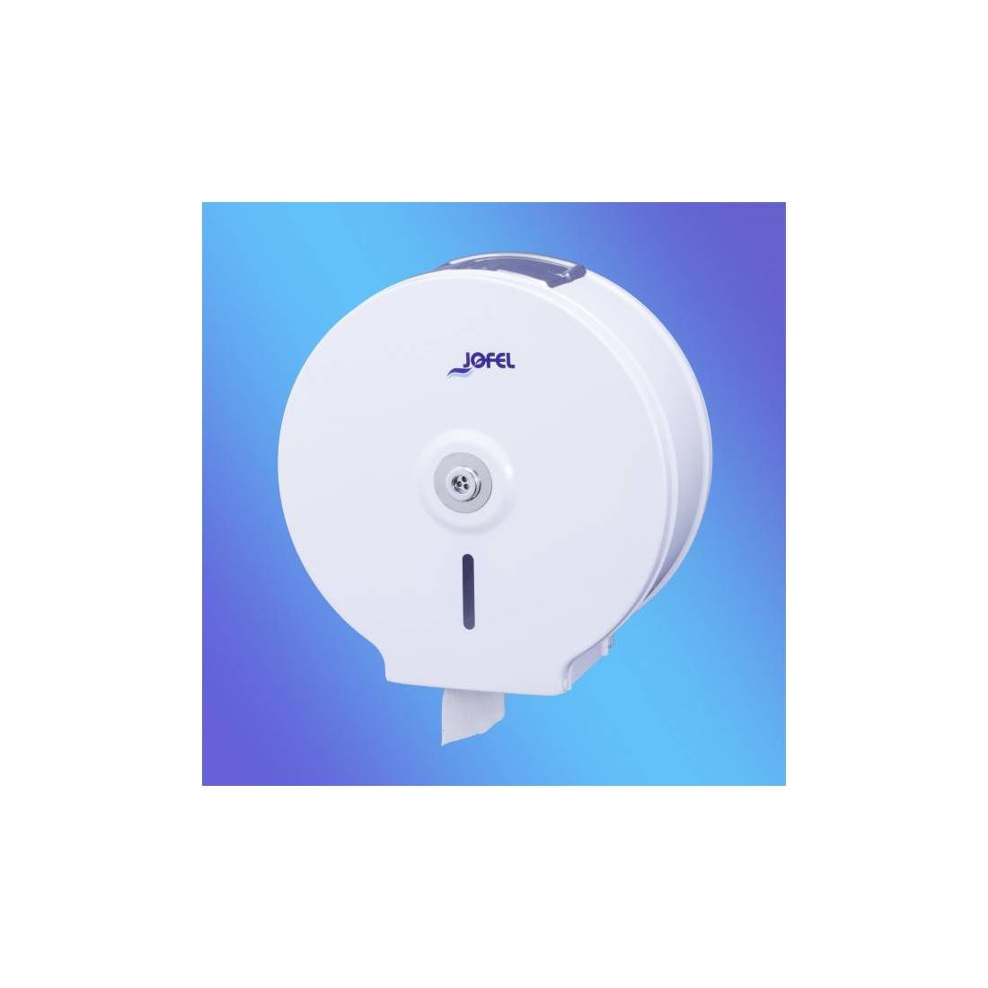 JofelDispensador de papel rollo en continuo con cenicero superior.\nChapa de acero electrocincada pintada en poliéster blanco.\nCerradura con llave central y visor de carga.\nAntivandálico.\nAdmite ro
