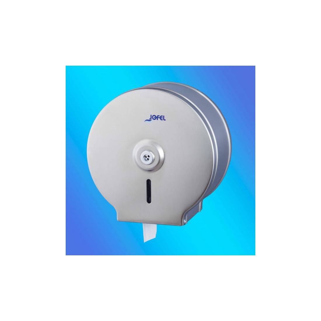 JofelDispensador industrial de papel rollo, tamaño pequeño.\nFabricado en acero inox. satinado de alta calidad.\nCerradura con llave, visor frontal de carga y antivandálico.\nAdmite rollos de hasta 200