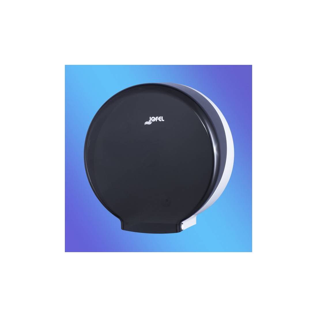 JofelDispensador de papel rollo en continuo.\nSoporte en ABS blanco y frontal en SAN fumé de alta calidad.\nCerradura con llave y visor de control de carga.\nAdmite rollos de hasta 300 mts. con diámetr