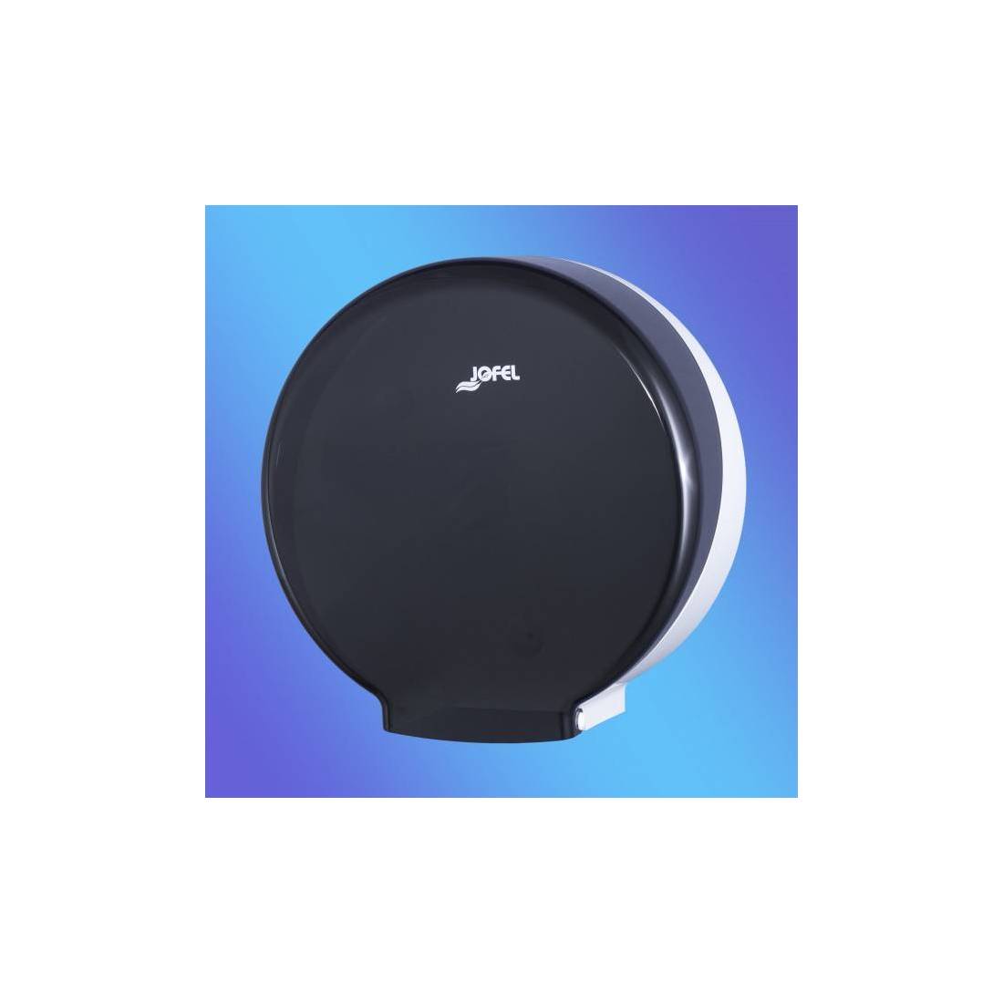 JofelDispensador de papel rollo en continuo.\nSoporte en ABS blanco y frontal en SAN fumé de alta calidad.\nCerradura con llave y visor de control de carga.\nAdmite rollos de hasta 400 mts. con diámetr
