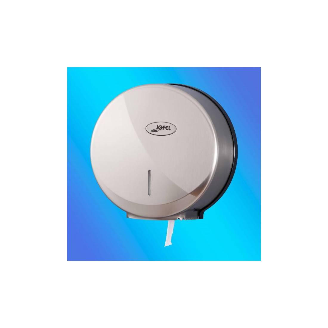 JofelDispensador de papel rollo en continuo con freno.\nCarcasa en ABS niquelado satinado (baño ácido, capa de cobre, doble capa de níquel y capa final de barniz transparente).\nSoporte en ABS negro de