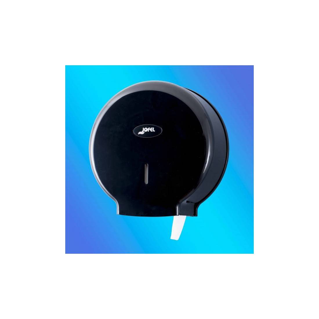 JofelDispensador de papel en rollo “Low Cost” económico.\nFabricado en ABS negro de alta calidad.\nCerradura con llave y visor de control de carga.\nAdmite rollos de hasta 400 mts. con diámetro máximo