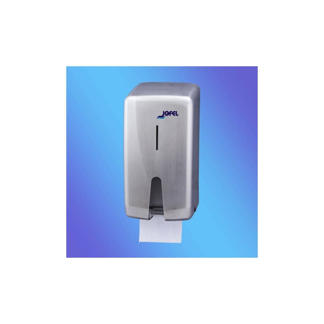 JofelDispensador papel higiénico doméstico en rollo.\nFabricado en acero inox. satinado de alta calidad y resistencia.\nCerradura con llave y frontal totalmente abatible para facilitar la carga.\nVisor