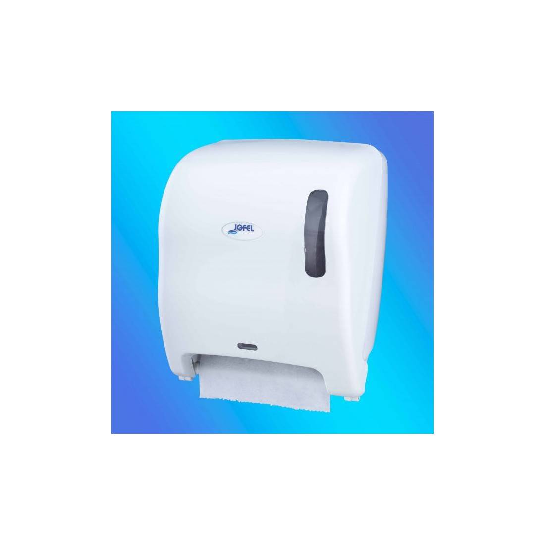 JofelDispensador óptico de papel bobina en continuo.\nFabricado en ABS blanco de alta calidad y resistencia.\nCerradura con llave, visor de carga y frontal abatible.\nAl acercar las manos, se activa el
