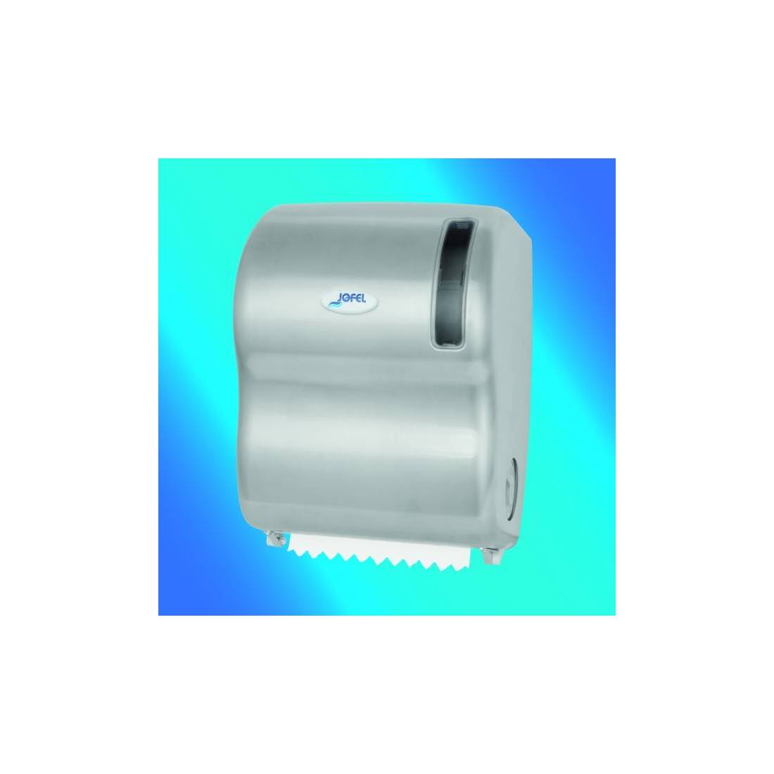 JofelDispensador de papel bobina en continuo.\nBase fabricada en ABS.\nCarcasa fabricada en Acero Inox de alta calidad y resistencia.\nCerradura con llave, visor frontal de carga de papel y frontal aba