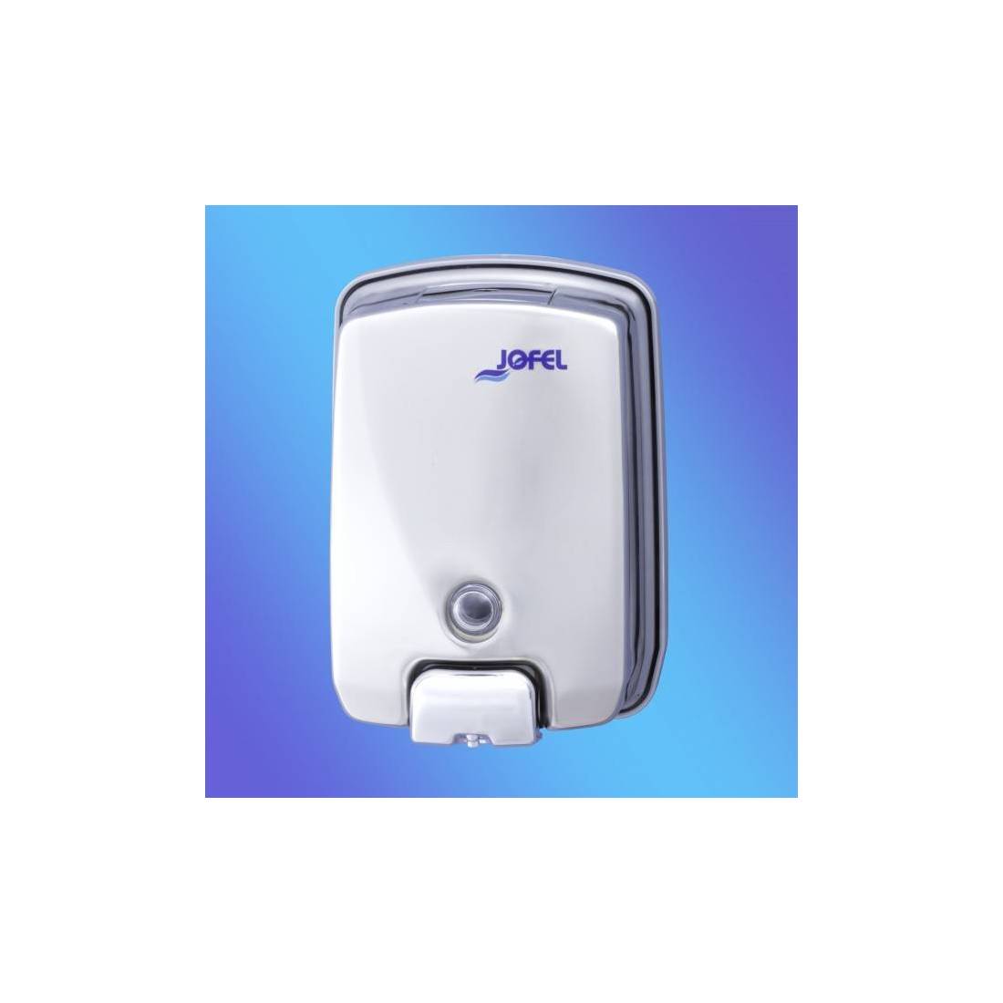 JofelDosificador de jabón líquido con depósito rellenable.\nCarcasa de acero inox. brillo de alta calidad y resistencia.\nAntivandálico y robusto.\nCerradura con llave y visor de carga.\nDepósito de 1