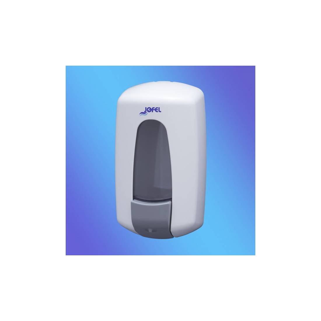 JofelDosificador de jabón líquido con depósito rellenable.\nDepósito transparente en SAN de 0,900 Lts.\nSoporte, carcasa y válvula en ABS blanco de alta calidad y resistencia.\nCerradura con llave y ca