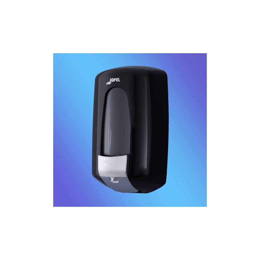 JofelDosificador de jabón líquido con depósito rellenable.\nDepósito transparente en SAN de 0,900 Lts.\nSoporte, carcasa y válvula en ABS negro de alta calidad y resistencia.\nCerradura con llave y car
