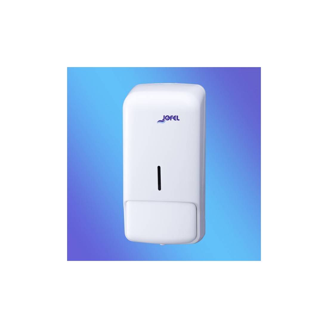 JofelDosificador de jabón líquido con depósito rellenable.\nCarcasa en ABS blanca de alta calidad y resistencia.\nPulsador en ABS blanco integrado en la carcasa.\nCerradura con llave.\nCapacidad 0,850