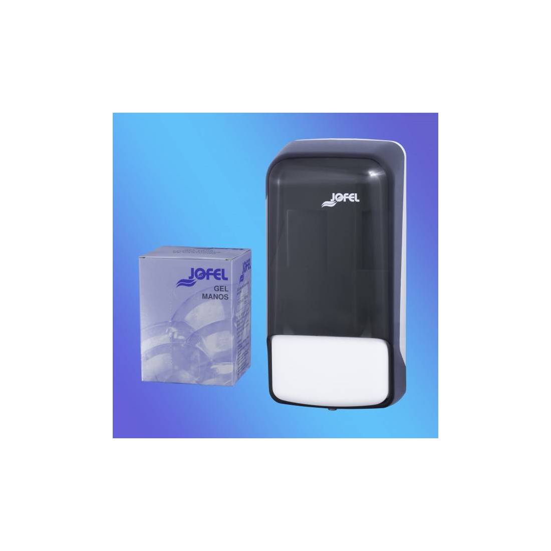 JofelDosificador de jabón líquido con cartucho, línea Azur.\nCarcasa fabricada en SAN fumé de alta calidad y resistencia.\nCerradura con llave.\nVisor de carga.\nPara cartuchos de 0,800 Lts. Jofel ref