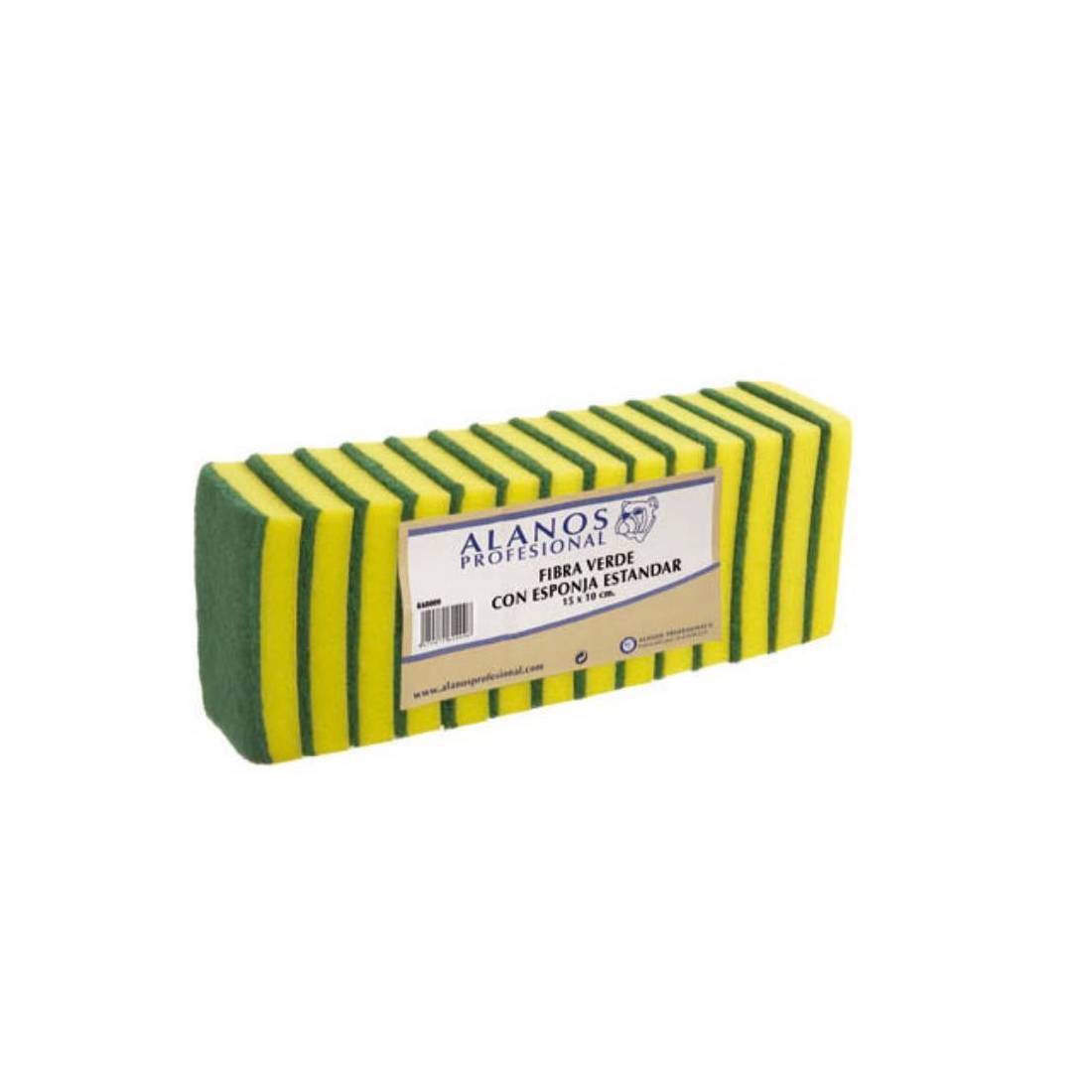 ESTROPAJO FIBRA VERDE CON ESPONJA ALANOS / 15 X 10 / 1 pqte. 14 uds.