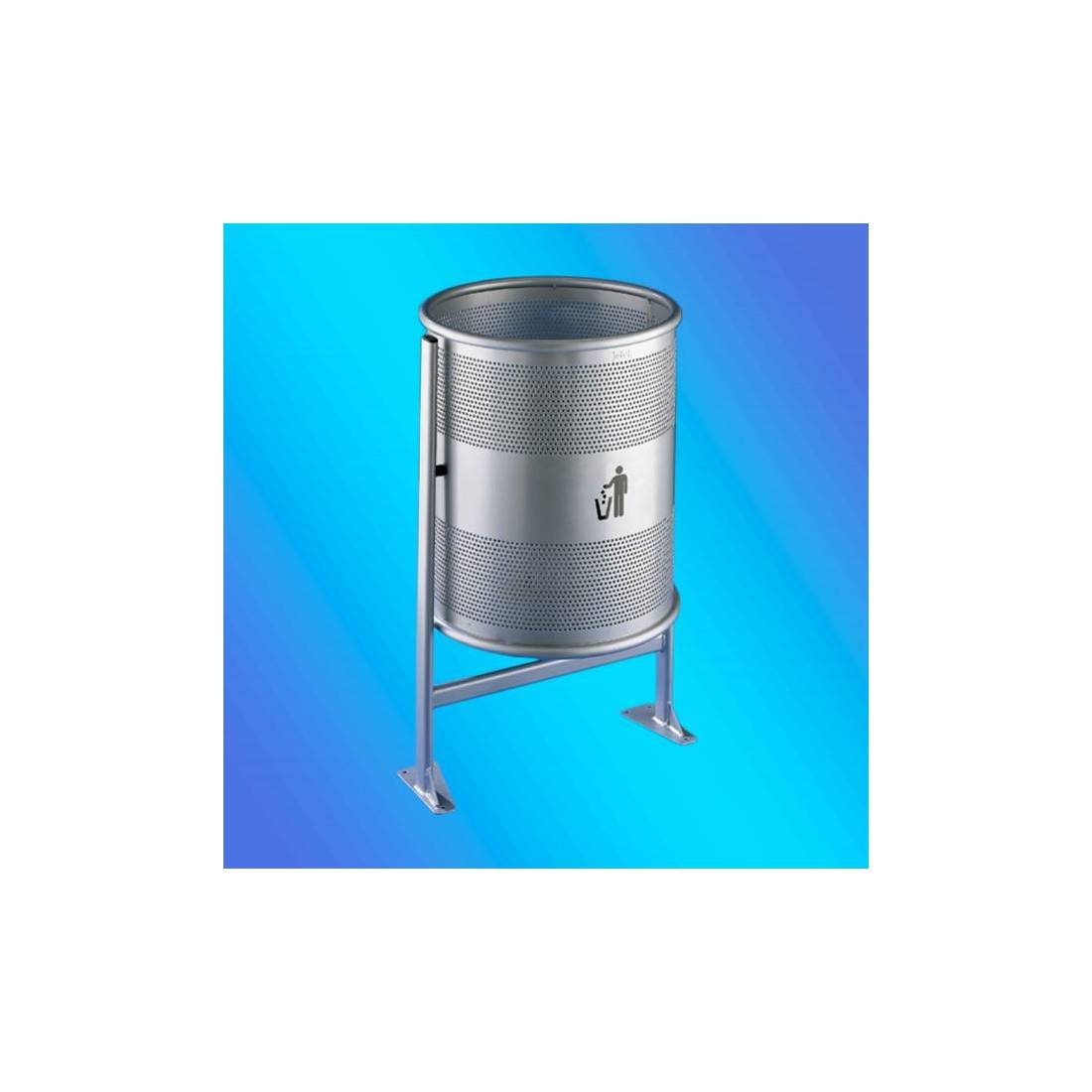 PAPELERA CIRCULAR PINTADA PLATA PERFORADA CON PIE / 90 LTS / AL71300