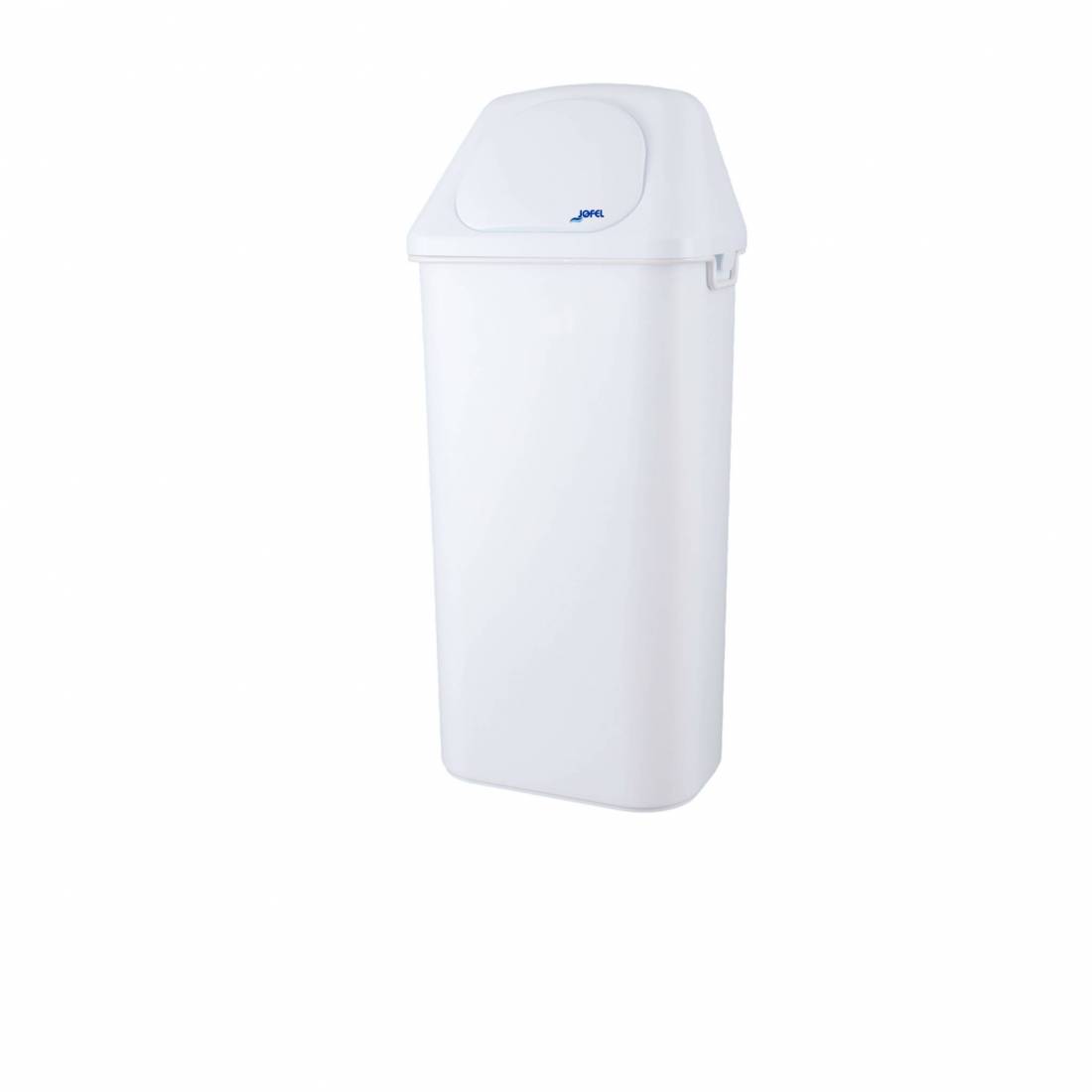 JofelFabricado en polipropileno blanco de alta calidad y resistencia.\nCabezal en ABS blanco en forma piramidal desmontable.\nTapa abatible con muelle integrado en cabezal.\nForma rectangular y de 40 L
