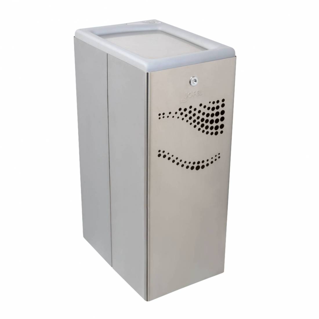 JofelFabricada en Acero Inox Satinado de Alta calidad y resistencia.\nChapa de Acero de 0,8 mm. de espesor.\nMarca en relieve y decoración frontal.\nTapa basculante de Acero Inox de Alta Calidad.\nInc
